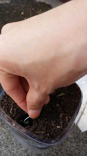 2 hacer 3 espacios por un dedo para plantar semillas y plantarlas.
