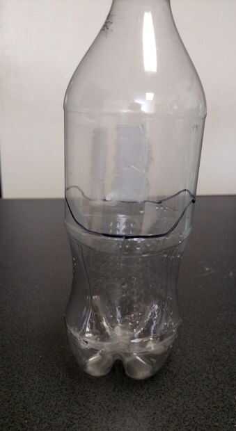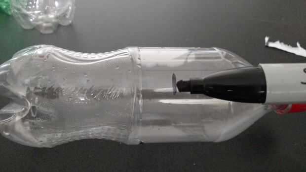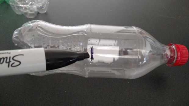 3. Con el marcador, haga una marca pequeña en aproximadamente la mitad de la botella.
