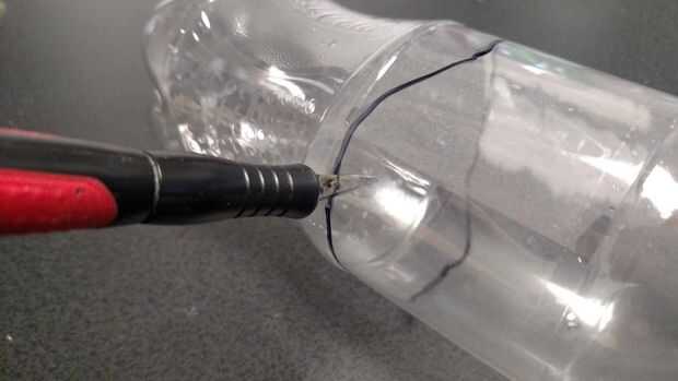 4. En el lado opuesto de la botella, haga otra marca pequeña en el mismo lugar.