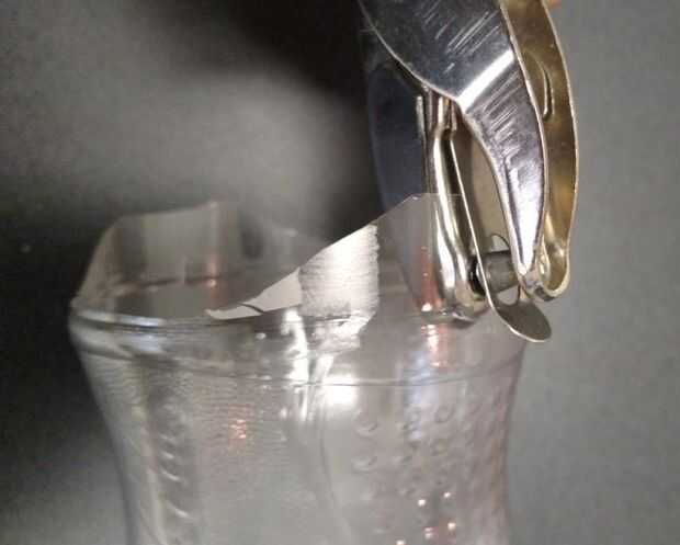 9. Con el cuchillo, con cuidado cortar la botella en la línea.