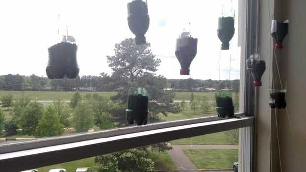 Un muy bajo costo, colgante hierba, flor, (o para los más salvajes, ambos) jardín de casi una docena de pequeñas plantas. Ocupa muy poco espacio y es fácil moverse alrededor y fácil al agua. Si por casualidad usted sobre agua de las botella-pot-a-ma-jigs, sólo puede Desenroscar la tapa de la parte inferior y el exceso de agua puede gotear en el botella-pot-a-ma-jig debajo de él!