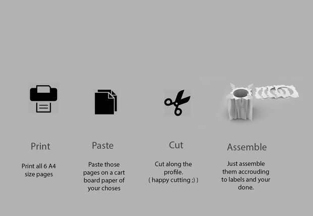 1) imprimir todas las seis páginas de tamaño A-4 en un papel estándar.