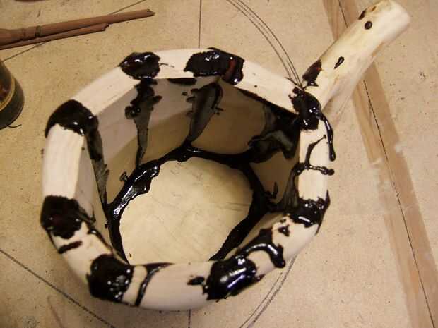 Algunos, esos insectos utilizan para conseguir que el viento fuera de la colmena - o comprarlo (tengo un puñado de vecino apicultor). Calor en una cocina olla y pobres y pegar en las uniones de la taza. Se endurecerá rápidamente. Un poco de lijado (otra pena) y hecho es ese trabajo. También puede utilizar cera de abeja: menos pegajosa y algo más débil que el propóleos.