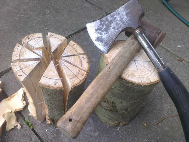 Para disminuir la posibilidad de que la taza de deformación antes de volver a colocar las piezas, ideal permite la sección de registro corte a secar por al menos una semana antes de partir en segmentos.