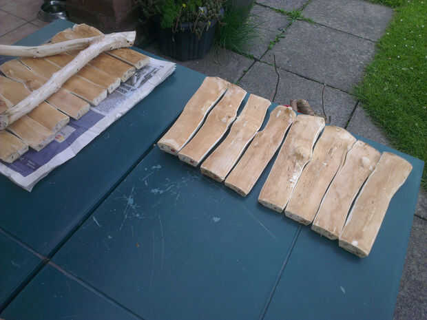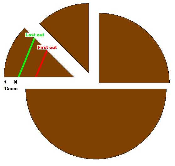 La manera más fácil y más precisa para dividir los registros es con un hacha y una maza pesada. Al hacer la primera división, hacer varios golpes ligeros con el hacha/martillo a lo largo de la línea sin causar que partir muy lejos por lo que en el momento en se divide, no se desvían de la línea previamente dibujada. Todos los cortes de más deben ser posibles sin tener que volver a localizar la cabeza del hacha. Habrá alguna variación en la anchura del segmento en la parte inferior de la taza, pero será aproximadamente igual a la parte superior.