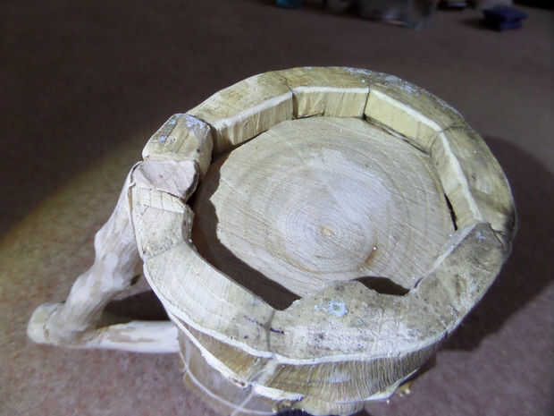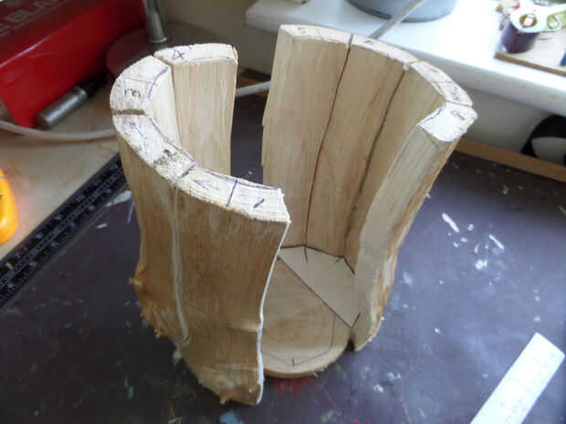 He optado por una base ligeramente elevada, y la naturaleza irregular de las paredes internas significaba que era difícil conseguir la forma correcta. Trazado el contorno de cada mitad en un trozo de cartón para obtener el contorno áspero, entonces comprueba su ajuste cuando son criados por unos 2cm. Algunas paredes fueron más lejos de la tarjeta y otros estaban cercanos, pero un par de iteraciones de plantilla más adelante y tenía la forma correcta.