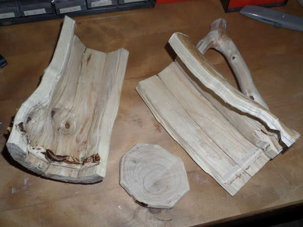 Transferí las dos mitades de la plantilla a una rebanada fina del mismo haya árbol tronco cortar antes con la motosierra y cortar alrededor de él con una sierra de calar en un ligero ángulo, por lo que la base efectivamente resaltados varios milímetros más allá de la plantilla.