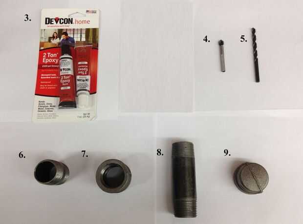 9. 1" casquillo del hierro negro - $2,00. Sección de la tubería de aceite de gas de su ferretería local.