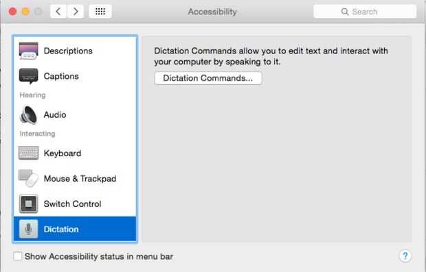 Finalmente para completar la instalación, desea volver a la configuración, haga clic en accesibilidad. Haga clic en la indicación y luego haga clic en comandos de dictado. A partir de ahí marcar la casilla que dice "Enable advanced comandos". Ahora estás listo para ir! Hay dos maneras de añadir tus propios comandos, la primera forma es hacer clic en el plus debajo del cuadro de comandos de dictado y tendrá varios desplegable menús para seleccionar el programa o archivo que desea abrir o texto a pasta etc, y lo del comando que desea utilizar para él. Esta es la manera rápida y fácil. La forma más flexible es utilizar automator.