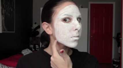 Solía No mancha crema maquillaje blanco cubre la totalidad de mi rostro. Apliqué en una manera áspero, manchas para añadir profundidad y textura a la "máscara". No hay rima o razón para ello, acabo de ir a la ciudad, asegurándose de obtener entre los pelos de mis cejas, también.