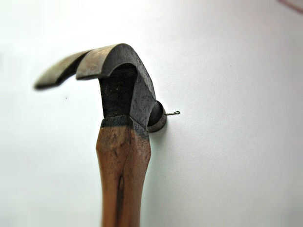 En primer lugar, corte de 3 pulgadas de alambre y doblar por la mitad. Luego, utilice unos alicates de punta plana para que la broca redondeada tan plana como sea posible y un martillo para hacer la firma metal.