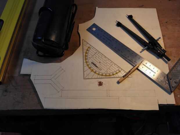 empecé con mi botella que debe caber en la caja de medición. Porque no me gusta planificar mucho, diseñé las piezas directamente sobre la madera contrachapada. No tengo cualquier cosa exacta, lo hice completamente gratis.