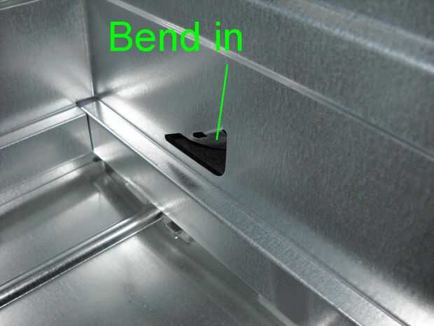 Este archivador tiene L en forma de cut outs y una sección de metal doblaron hacia afuera para actuar como topes para evitar que el cajón que sacó todo el camino. He doblado estas detrás en y quitar los cajones.