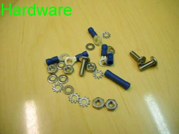 Se necesita algún hardware como en la imagen. El tamaño no importa tanto como los tornillos, tuercas, arandela de plana y bloquear las arandelas ajuste todos juntos. Usted también necesita anillo cable y conectores crimp terminal.