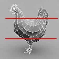 Divido gallina en 03 partes, se utiliza por encima de la imagen 3D de la línea de referencia.