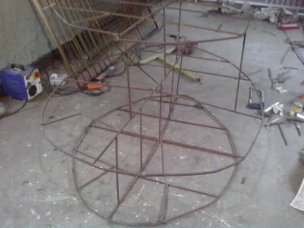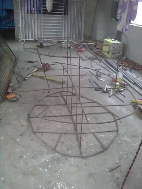 Nuestro esqueleto básico está listo. después soldado con autógena varilla circunferencial para cubrir los huesos de pescado. Por eso empecé a soldadura de varilla de una sección curva y autógena al siguiente punto y esto va hasta el punto final viene.