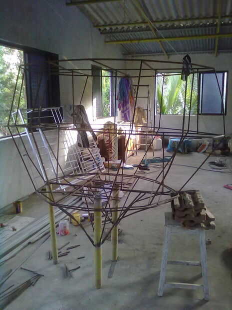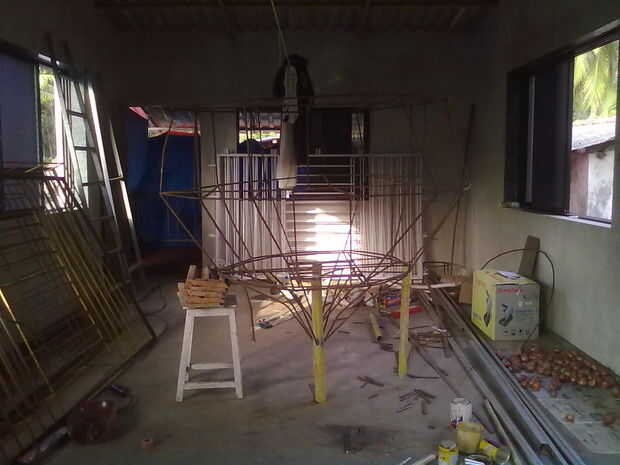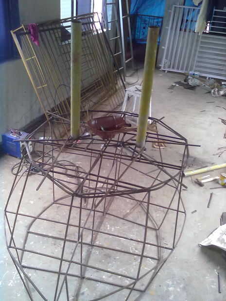 Hice desmontable parte inferior del cuerpo, por eso usé otro fondo forma y soldar tubos ovalados a él. Seguí estos tubo 12" aparte. y soldar con considerando el centro de gravedad de esta estructura.