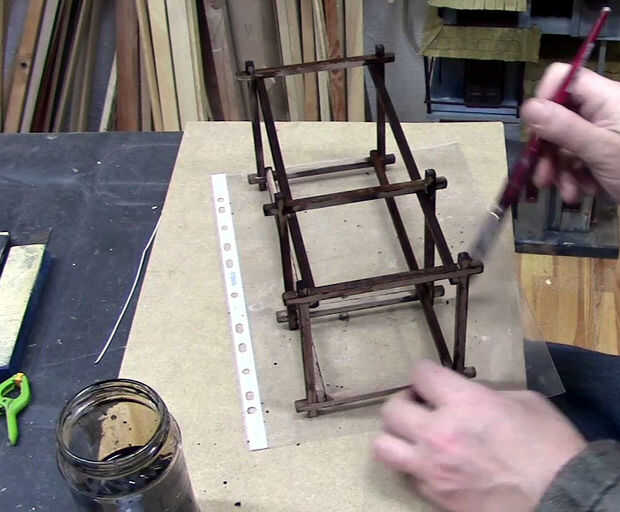 Pinté con tinte de agua (color nogal). El efecto es que la madera de balsa se parece a la nuez.