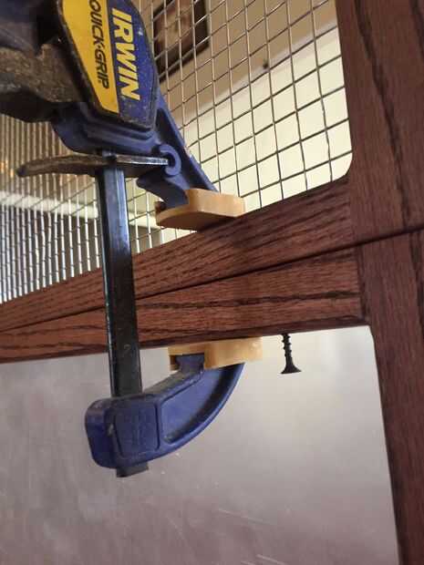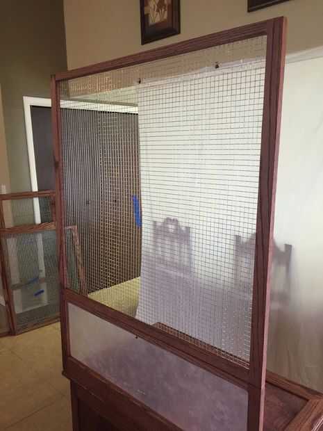 Línea del panel trasero inferior A con los orificios en la parte inferior de la parte inferior de la jaula. Coloque tres tornillos de 2" de la parte inferior en el panel. A continuación, panel de AA se une al panel A con tornillos 1 5/8" de la barra transversal superior del panel A en la barra inferior del panel AA. Puede utilizar una pinza para sostener los paneles apretados que los tornillos estén en.