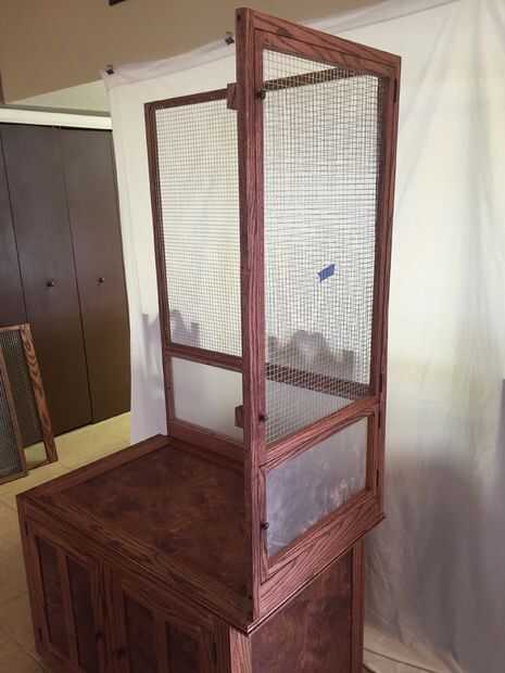 Establecer el fondo en la parte superior del gabinete y deslice la parte posterior de la parte inferior de la jaula en el borde posterior de la base.