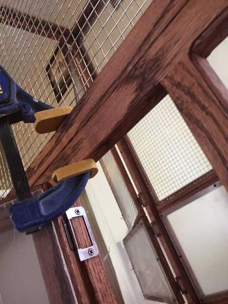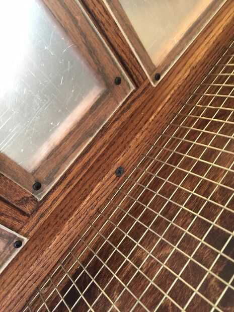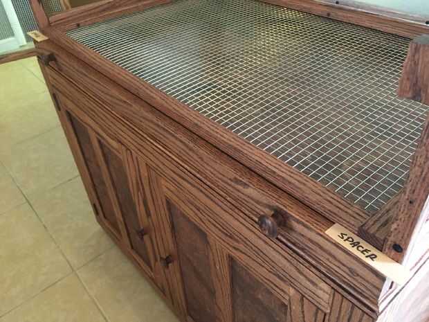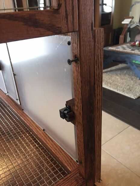 Utilice a los dos separadores en la parte superior la cara del cajón y establezca el Panel D encima de los. Fije el Panel D paneles B y C con 1 5/8" tornillos va desde el interior de los marcos de las puertas en Panel D. Luego coloque Panel DD arriba Panel D. Coloque 1 5/8" tornillo de la barra transversal superior de D en la barra inferior de DD Dónde está la puerta. Esto es donde pones el tornillo final de la rejilla de la pantalla en la barra inferior del Panel D.