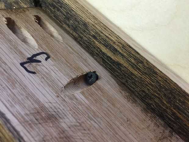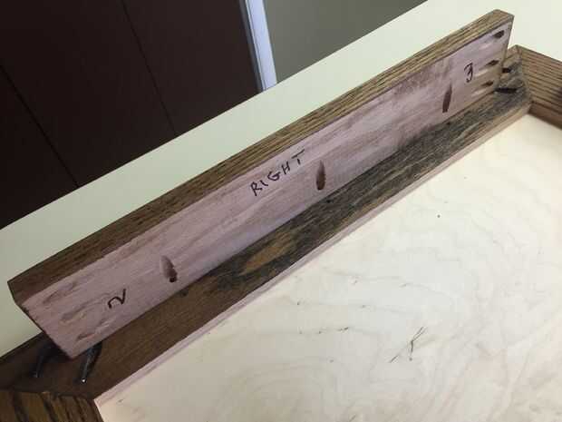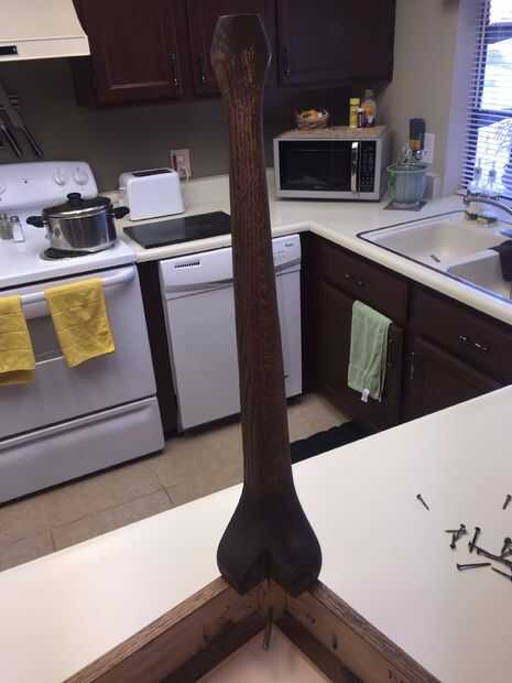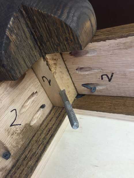 A continuación, utilice 1 5/8" tornillos para sujetar la falda a las piernas. Todo debe ser agradable y apretado. Luego mueva la unidad en las piernas.