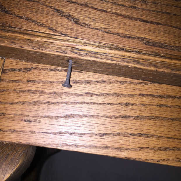 Luego, comenzar con el panel A, que es la parte trasera. Alinee los orificios debajo de la pieza inferior en la barra inferior del panel. Utilice tres tornillos de 2" para conectar. Estos pueden ir agradable y apretado. Luego el trabajo hacia la derecha para Panel B. Hay dos 2" tornillos, así como por el grupo C en el lado opuesto.
