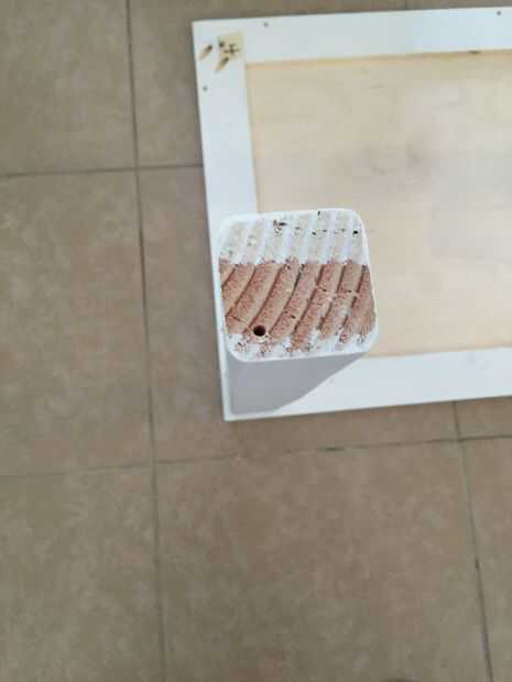A continuación, coloque las cuatro patas en su esquina numerada correspondiente y la pata de apoyo central en su bloque. En la parte inferior de cada pata es un pequeño orificio perforado en la esquina que apunta a la esquina exterior. Esto alinea los cirios y los agujeros de las piezas de la base de apoyo.