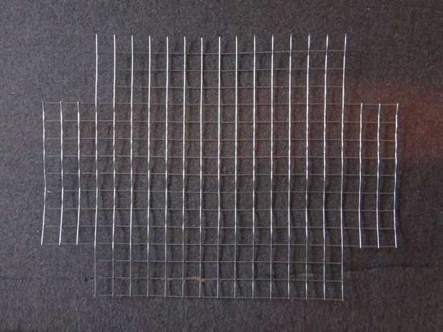 1. Cortar el rollo de 15' en doce secciones de 15 "x 24".  Los extremos abiertos de alambre (en la parte superior del cuadro) en cada sección se convertirá en las bisagras.
