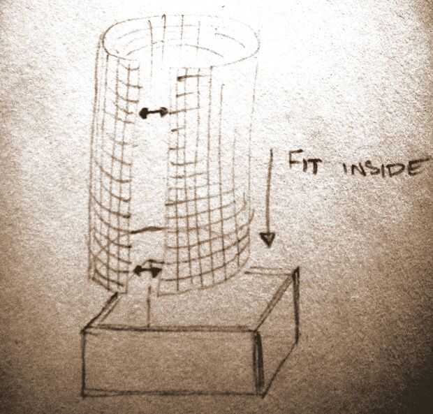2 reunir los extremos así que hace un flojo el rodillo y el borde inferior en la parte inferior de la (uno más pequeño si hay pequeña) caja de vino. Recortar si necesitan y trabajar el alambre en los bordes de la caja del vino, así que todo encaja perfectamente.