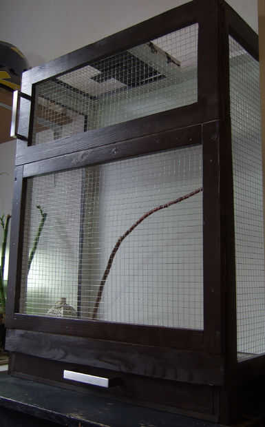 quería ampliar el espacio para mis aves volar. No queriendo comprar una jaula nueva comenzó a tormenta de ideas sobre maneras de construir un espacio ampliado.Construí esta jaula para alrededor de $10. Desliza hacia la puerta de la jaula abierta de l