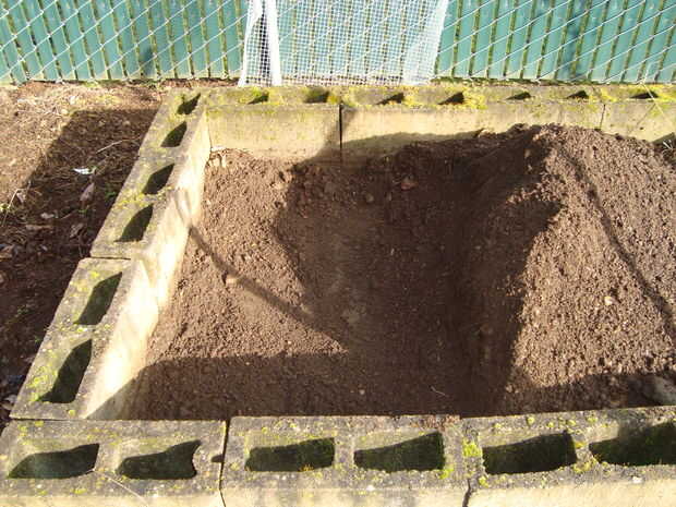 Los meteorólogos equivocaron (otra vez), y llegamos a sol cuando se supone que la lluvia, así que aproveché la oportunidad de cavar! Quería la jaula sin compactar el suelo demasiado, como hubiera sido si he intentado esto durante o justo después de una intensa lluvia, que había sido predicha.