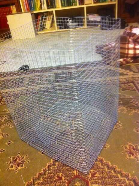 Así que, básicamente este es el final de la fase de construcción. Debe tener una jaula de patata de paño de hardware con un fondo cerrado. Mina terminó siendo cerca de 1 1/2 pies altos y a poco más de un pie de ancho.
