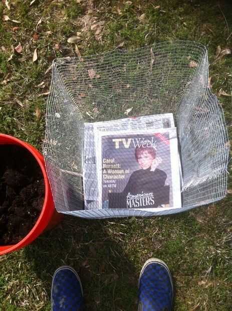 Ya que estoy usando mezcla de rellenado (que está bastante bien) me pareció importante a la línea de la canasta para evitar que el suelo fuera de la jaula. También espero que el periódico desacelerará el drenaje solo un cabello para que el suelo puede permanecer hidratado. Asegúrese de que es el papel el papel de la mancha.