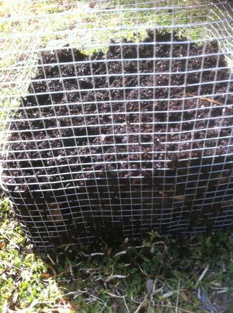 yo simplemente tirado el cubo de mezcla en la jaula. Esto me dio unas 6 pulgadas de mezcla dentro de la jaula. Algunos cayeron a los lados pero debe estar bien. Asegúrese de que romper cualquier terrones que pueden estar en el suelo. Nivel a través de la jaula.
