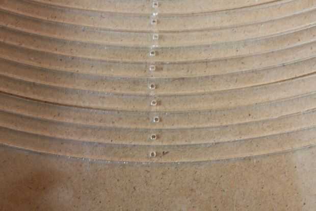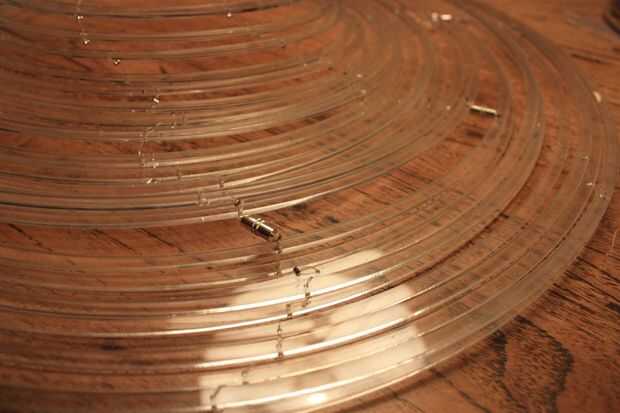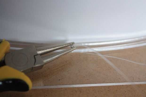 A través de un fuerte hilo engarzado cuentas puede determinar ubicaciones fijas entre las costillas de la espiral.