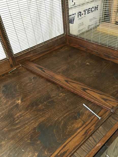 Aquí es un hermoso roble pantalla con roble patas de Queen Ann, paneles de acrílico de 3/16", moldura, alimentadores agradable, iluminación UV y un aire de limpieza y sistema de filtración. La jaula mide 36 pulgadas de alto, 42 pulgadas de ancho y 24