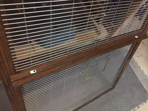 Aquí es un hermoso roble pantalla con roble patas de Queen Ann, paneles de acrílico de 3/16", moldura, alimentadores agradable, iluminación UV y un aire de limpieza y sistema de filtración. La jaula mide 36 pulgadas de alto, 42 pulgadas de ancho y 24