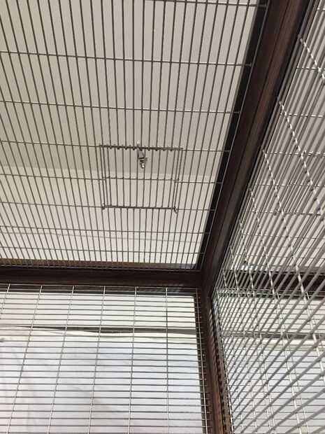 Aquí es un hermoso roble pantalla con roble patas de Queen Ann, paneles de acrílico de 3/16", moldura, alimentadores agradable, iluminación UV y un aire de limpieza y sistema de filtración. La jaula mide 36 pulgadas de alto, 42 pulgadas de ancho y 24