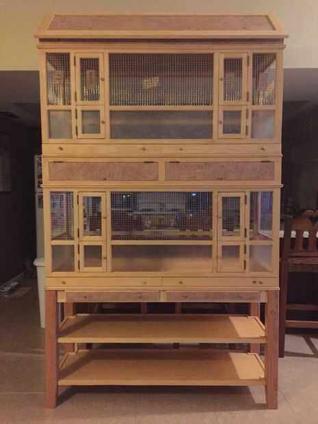 La altura en el vértice de la estructura a de la planta es de 80 pulgadas. La base cuenta con dos cajones de almacenamiento junto con dos estantes. La unidad es de 18" de profundidad y 52" de ancho. Cada jaula es 22" de altura.