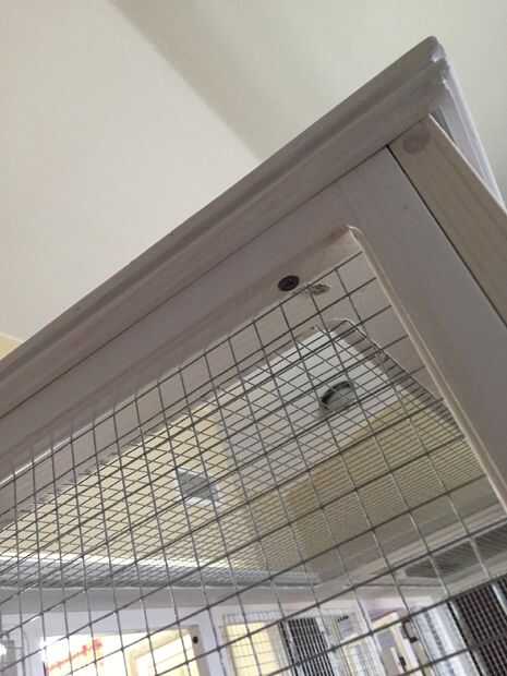 esta es la jaula de vuelo de Linda. En realidad, es más un interior pajarera. La jaula sí mismo mide 48 pulgadas de alto, 24 pulgadas de profundo y 86 pulgadas de ancho. Viene con patas de 26 pulgadas, haciéndolo 74 pulgadas de altura como una unidad