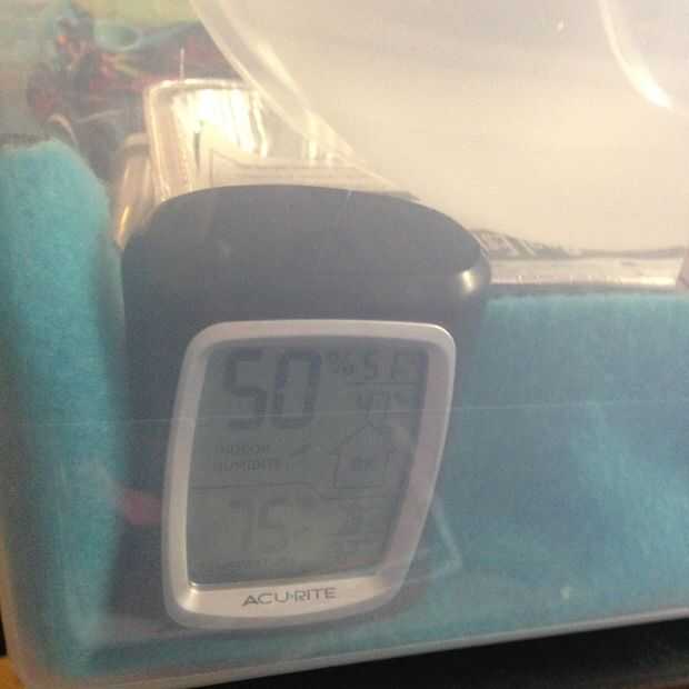 Yo iba para tratar de hacer algo elegante con el termómetro, como el velcro o los imanes, pero al final, decidí sólo dejar atrás la rueda hacia afuera por lo que fácilmente puedo verlo. Funciona muy bien hasta ahora.