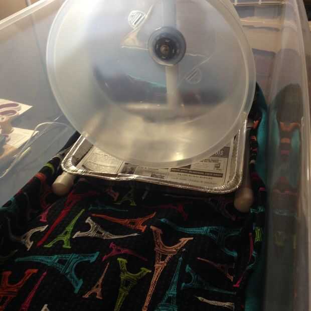 La última fotografía muestra uno de los calefactores que compré, intento mantenerlos apuntando a la jaula pero lo suficientemente lejos que fusión/hacer la botella de agua caliente no es un problema pero la temp. permanece alrededor de 75-80. Obtener realmente preocupado por esto, especialmente en el invierno. Dicen «un perro feliz es un perro cansado,» también un feliz hedgie es un hedgie caliente. Como he mencionado en los pasos anteriores, si el erizo se someten a temperaturas por debajo de 70 por mucho tiempo (o a veces incluso una cuestión de minutos u horas) a intentar hibernar. Hibernación es peligrosa a los erizos pigmeos africanos ya que son animales domésticos y no tienen la capacidad de regular su propia temperatura y se tiran de la hibernación. Hibernación también hace erizos más vulnerables a las enfermedades.