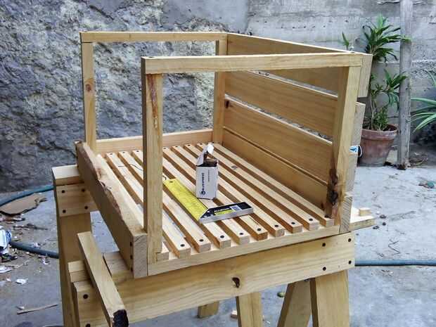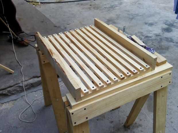* Colocar listones de madera (2, 5 x 8 x 60 cms) laterales separados una o 2 cms a 1.5 cms. De la el colocar primer uno abajo y luego arriba y luego los siguen se separan.