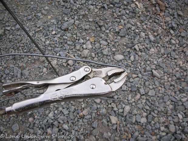 Uso el vicio agarra a un 'gancho' de la curva en los extremos de cable sueltos. Una vez que todos los ganchos hechos, estén casi hechas.