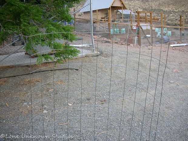 Para mi uso, me parece que 12 secciones me da una jaula tamaño agradable para mis tomates. Como se puede ver, los cortes son al ras de la izquierda, y el cable se está pegando hacia fuera en el lado derecho.