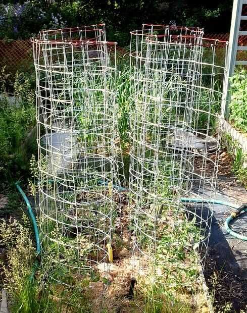 Quería que mis tomates para crecer para arriba, no hacia fuera, así que decidí construir algunas jaulas de torre adecuada para las docena plantas que quería crecer este año.