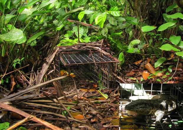 Bueno, cuando usted vive en la selva nunca se sabe lo que está al acecho alrededor. Vivo en un pequeño pueblo en la selva amazónica, y aunque es más bien desarrollado en algunos aspectos, está todavía en la selva. Nuestro vecino dos casas, había cogido un pollo por un pequeño ocelote (supongo) al mediodía. Es raro para gatos que en la caza en el día, pero es más raro verlos realmente. Que vieron dos veces. Todas formas, la verdad es que nunca sabe lo que acecha sobre. Pero quiero averiguar. :) Así la trampa entró en existencia - con gatos grandes en mente. :)
