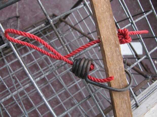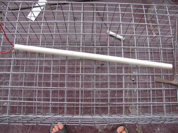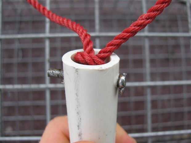 Una cuerda yo atados a un pedazo de tubo de pvc que había cortado un poco más largo que la trampa es alta.