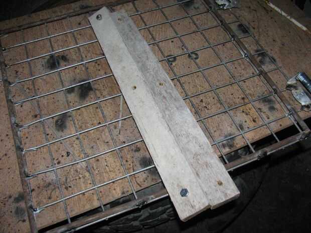 La pieza de madera con la puerta atornillada que puse en el interior de la trampa y atornillados que a él a través de la malla.
